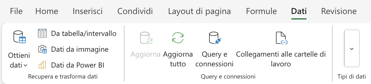 In particolare, fa comodo sapere dove si trova Power Query Excel: dopo la versione 2016 di Excel è nascosto sotto la scheda “Dati” nel gruppo “Recupera e trasforma dati”. Per versioni precedenti o più datate c’è un add-in scaricabile direttamente dal sito Microsoft.